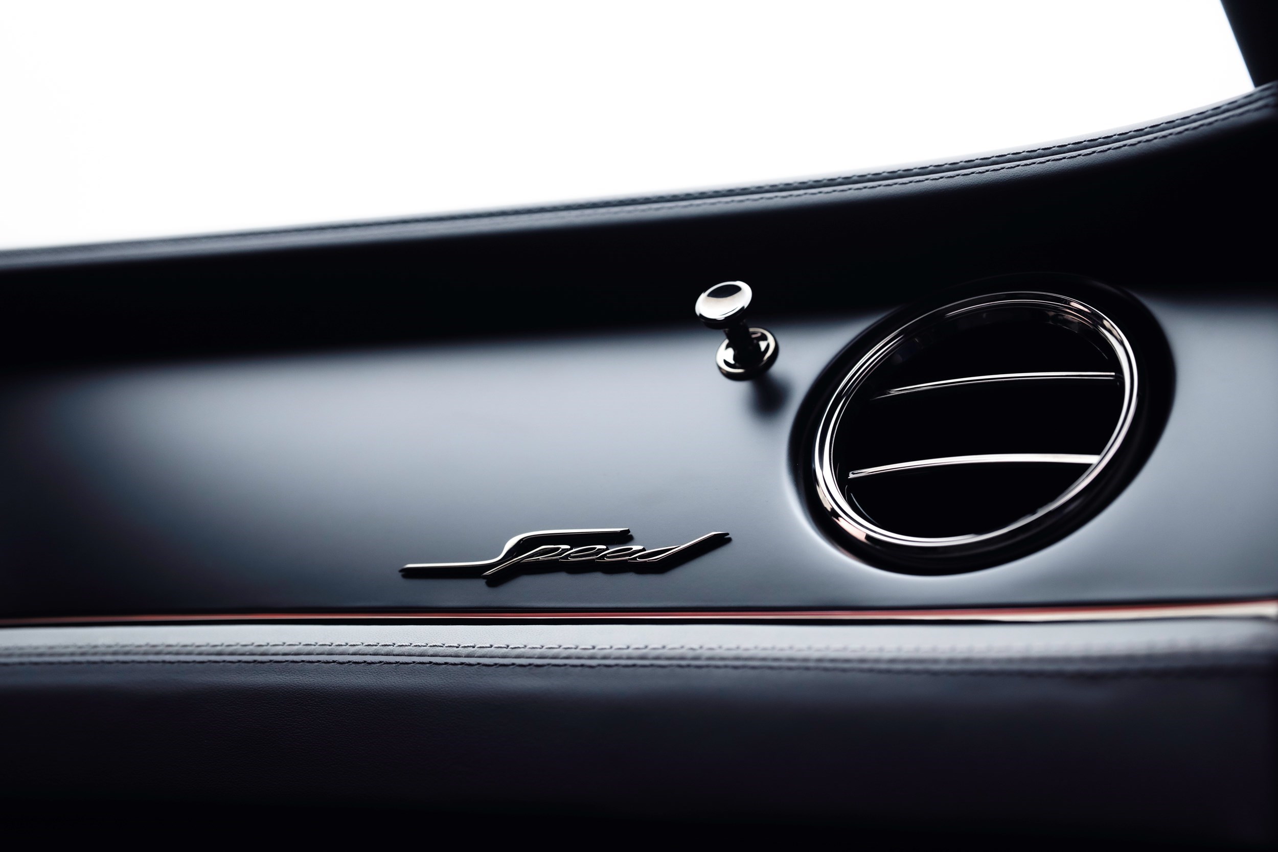The Flying Spur Speed, fading from metallic Tungsten into Onyx, nods to the night skies over Southern California. The interior echoes this contrast with Porpoise to the front half and Anthracite for the rear half. A brighter Stratos accent colour is used to highlight the stitching, seat piping and emblem stitching. The contrast between light and shadow reflects the dual character of the car itself – a serene saloon that is as rewarding to drive as it is to be driven in.
