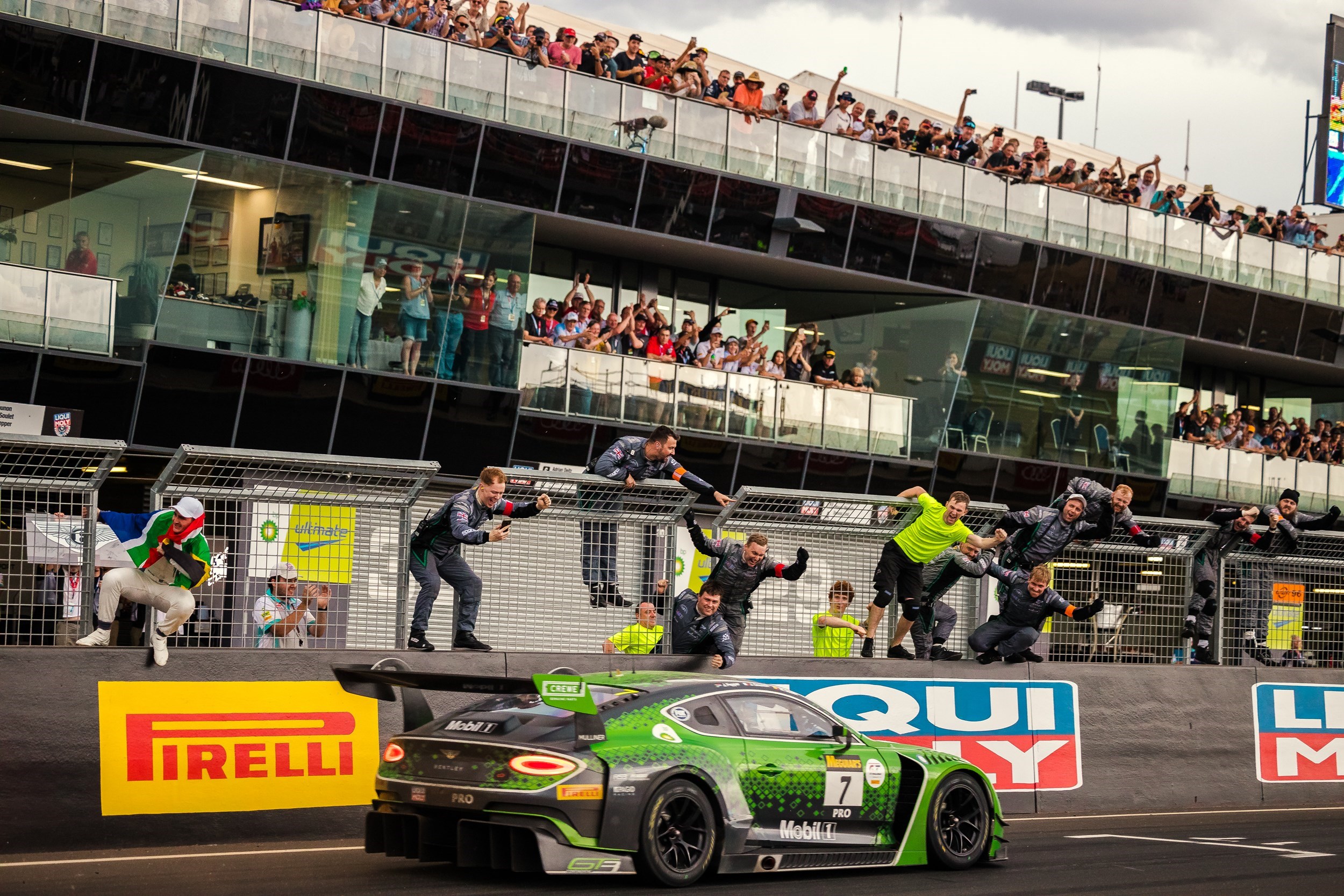 The car moved quickly through the order into podium contention. World-class stints from Soulet, Pepper and Gounon, and strong strategy and pit stops from the team, moved the team into P1 for a total time of seven hours – with the car running flawlessly. A superb reactionary pit-stop just over an hour from the end to deal with a puncture was the final act from the team to set the car up for victory. Rain loomed while ambient temperatures exceeded 40°C, but after the half-day sprint the #7 Continental GT3 crossed the line as the winner of the Bathurst 12 Hour. As they took the chequered flag, the crew also set a new race distance record of 314 laps - before the heavens opened and the team rejoiced in the rain.