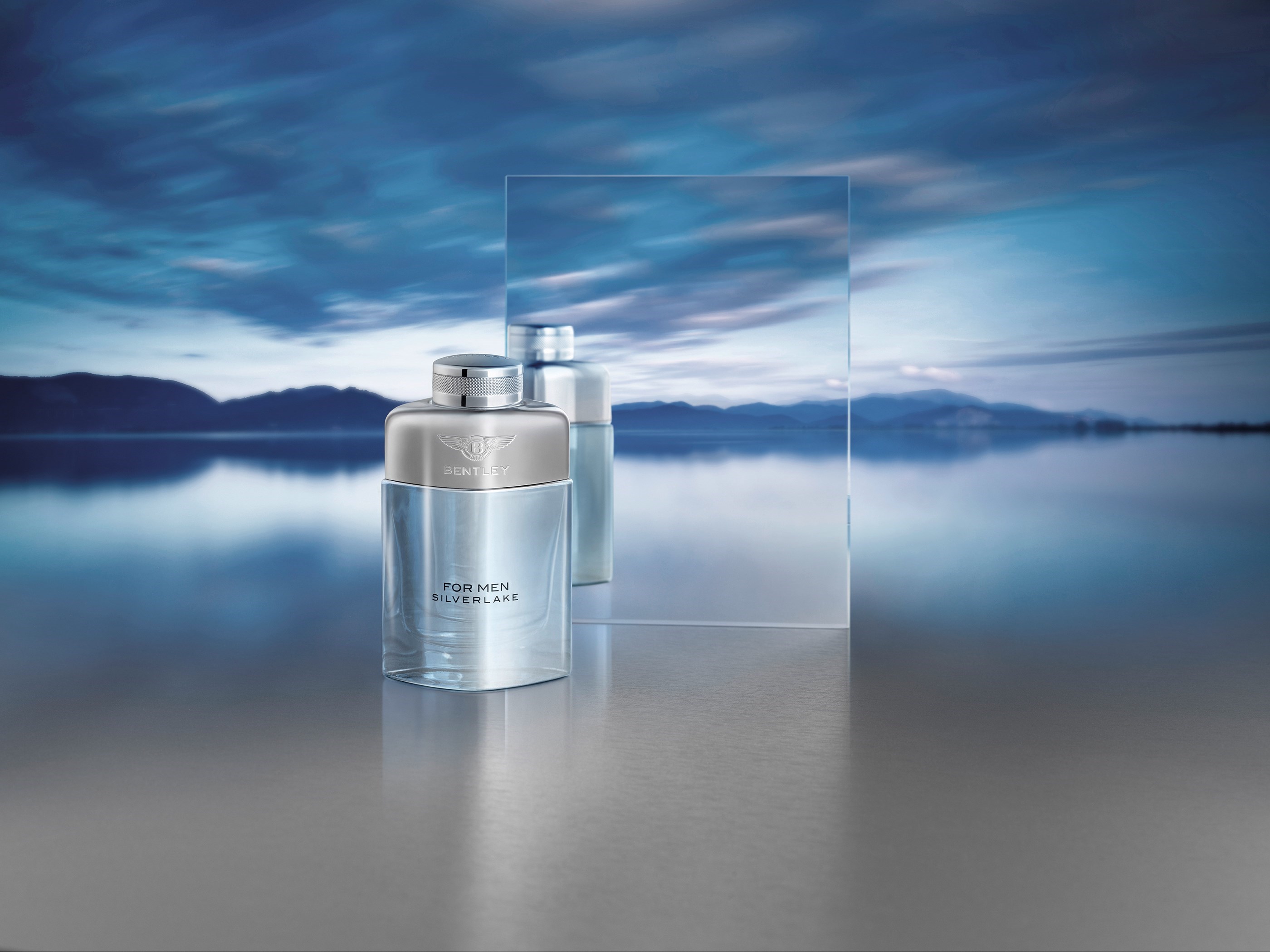 An iconic bottle, reinvented in ice-cool silver, designed to reflect the lines and curves of a Bentley car, the rounded form of the For Men bottle takes on a sleek new elegance with Silverlake, reflecting the cool accords of the new fragrance.