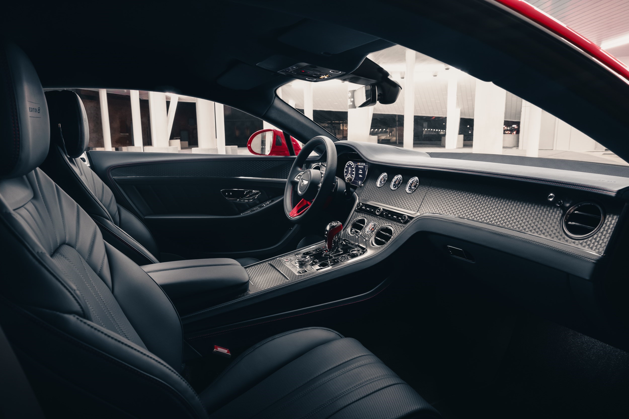 Edition 8 badging can be seen on the fender of the Continental GT and Continental GTC models, while on the Flying Spur the badge is located on the D Pillar. Inside, the Edition 8 motif can be found as an embroidered emblem upon the seat backs as well as engraved on the treadplates.