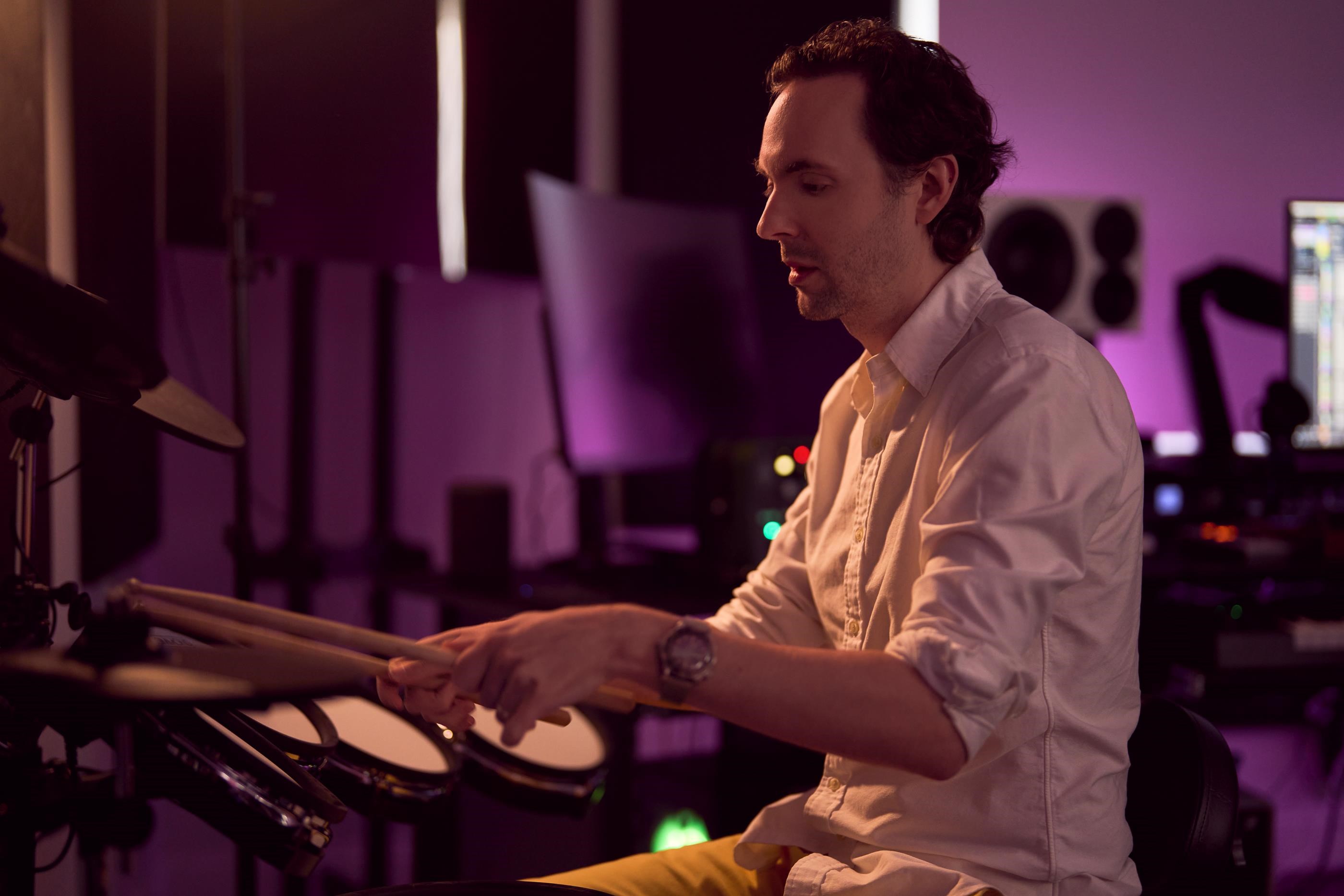 - Percussionist Holly Madge, who adds to her skills as a drummer by specialising in a huge array of ethnic percussion instruments. Performing in the UK, Madge recorded her stems on the bongos, Peruvian cajón, South American caxixi and Egyptian darbuka.