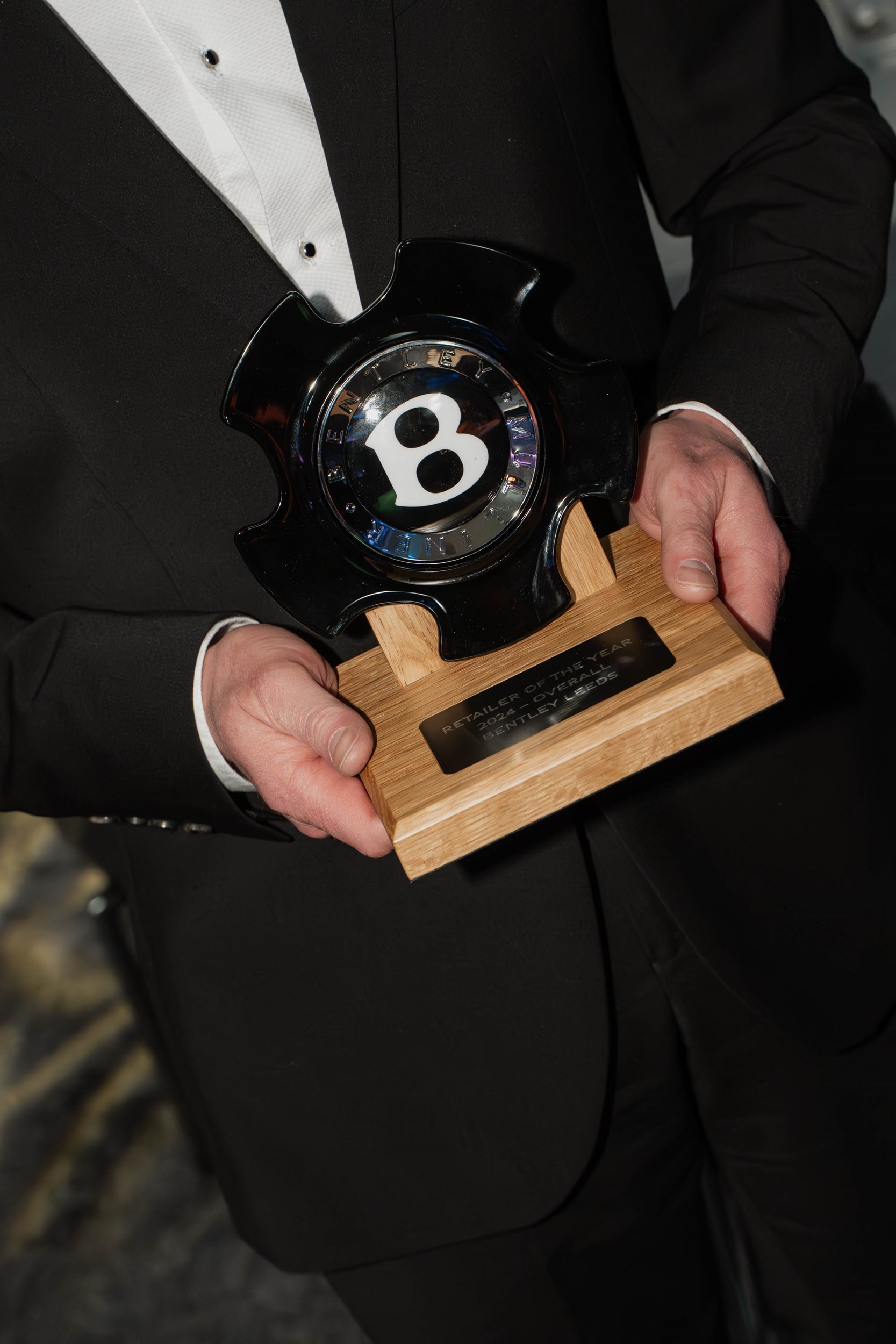 • The much sought after award trophies were handcrafted in Crewe and feature Open Pore Veneer and black Bentley self-levelling wheel badges