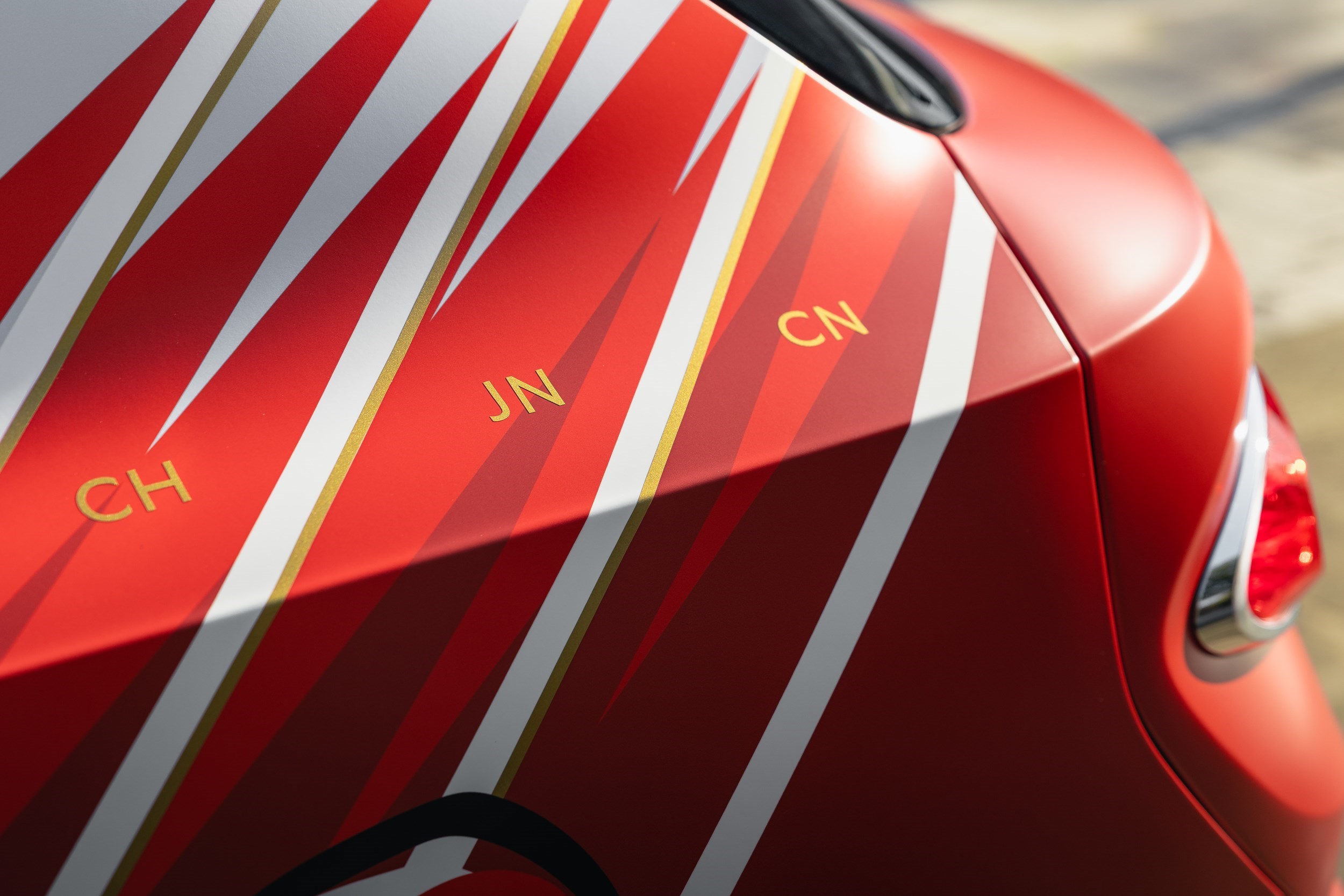The final design is a Satin Artica White Bentayga EWB which features bold artistic artwork and metallic gold details. The side of the car features the silhouette of an aircraft, sat just behind the wing vent. From this aircraft falls a number of poppies which grow in size as they descend down the car, depicting the poppies falling from the plane. Initials, in gold metallic, are placed on pillars to commemorate each of the 17 people lost. Finally, the number 85 features on the grille and bespoke poppy embroidery carry on the anniversary homage inside the car.