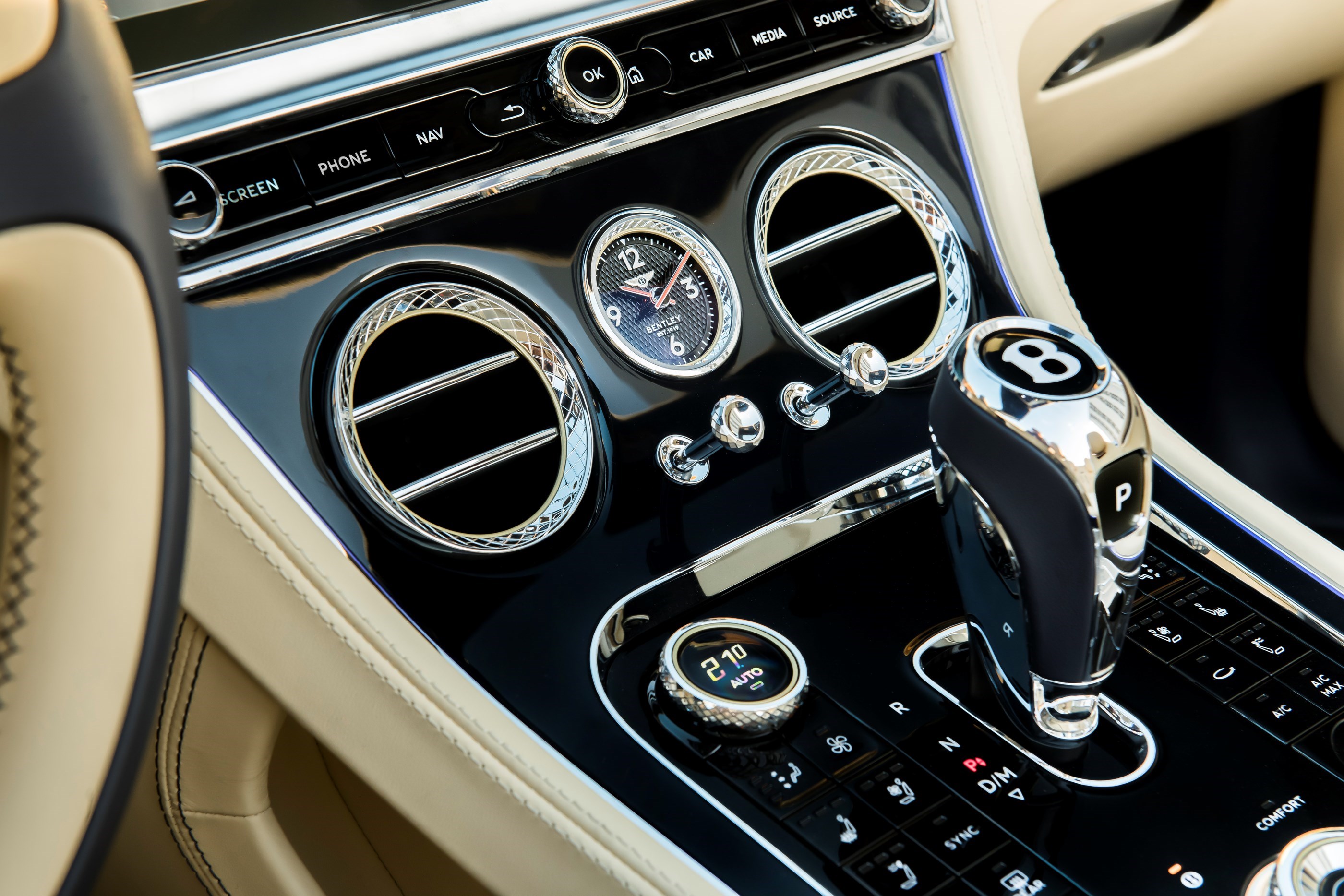 La funzione scaldacollo è stata riprogettata, per garantire un riscaldamento più potente e una maggiore silenziosità rispetto al modello precedente, ed è integrata con discrezione nei sedili Comfort riscaldati e ventilati, per ottimizzare l’efficacia e il flusso d’aria attorno ai poggiatesta a regolazione elettrica. Questo nuovo sistema è impreziosito da una scanalatura centrale cromata che si estende per l’intera larghezza del condotto, richiamando le celebri bocchette di ventilazione circolari Bentley. Le evolute caratteristiche pensate per il comfort includono inoltre un volante riscaldato e nuovi braccioli riscaldati, per offrire un’esperienza di guida lussuosa e piacevole in ogni condizione climatica.